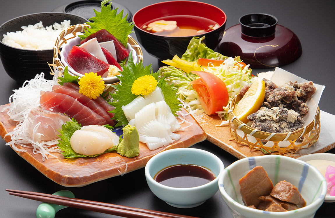 南三陸の漁港直送!新鮮魚介と希少な鯨料理を味わえる基本御膳