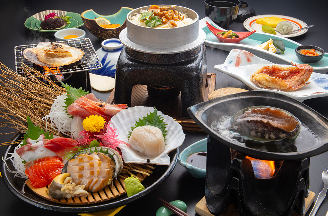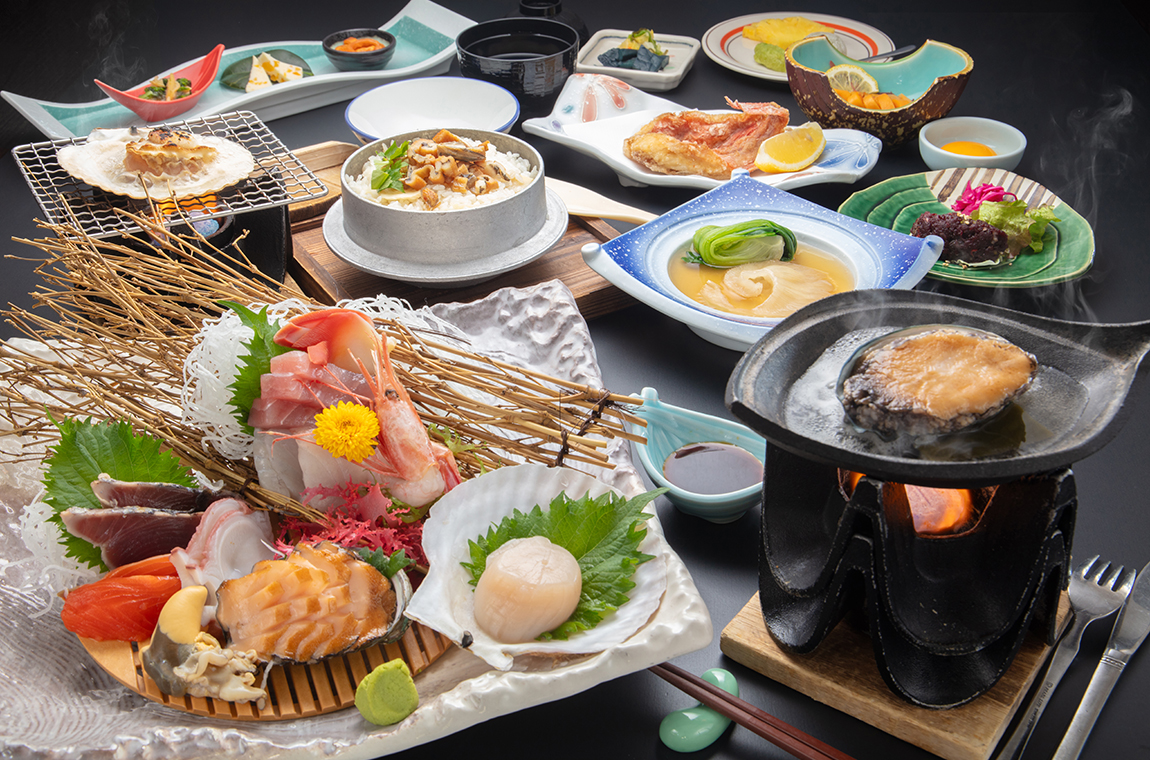 旨味がジュワっと広がる「アワビの陶板焼き」付き!旬の海の幸をたっぷり満喫