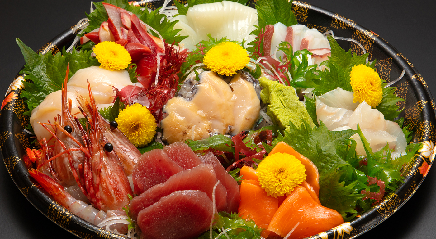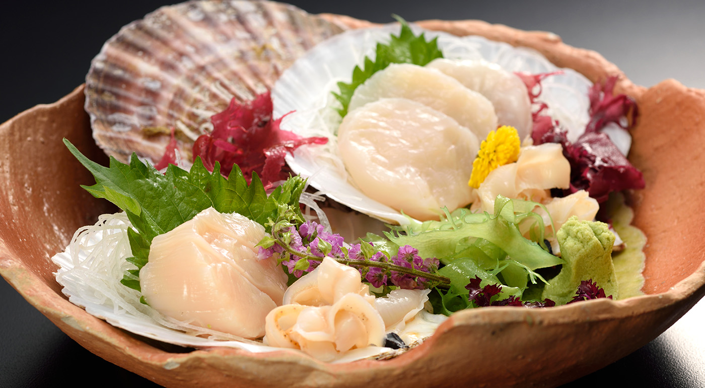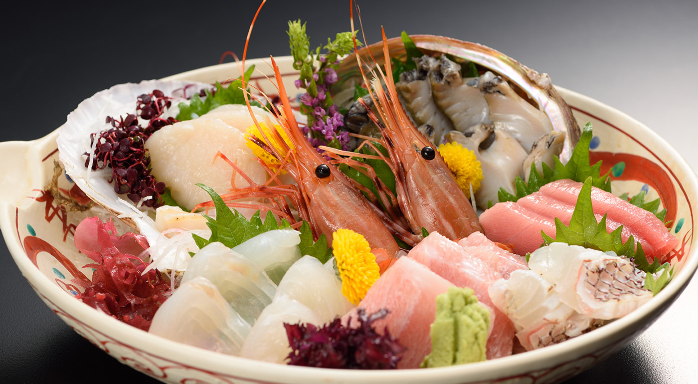 親潮と黒潮がぶつかり合う金華山沖で撮れる魚介類は、三陸の荒波に揉まれ身が引き締まります。金華山沖で四季折々獲れた、新鮮な魚介類の味をお楽しみください。