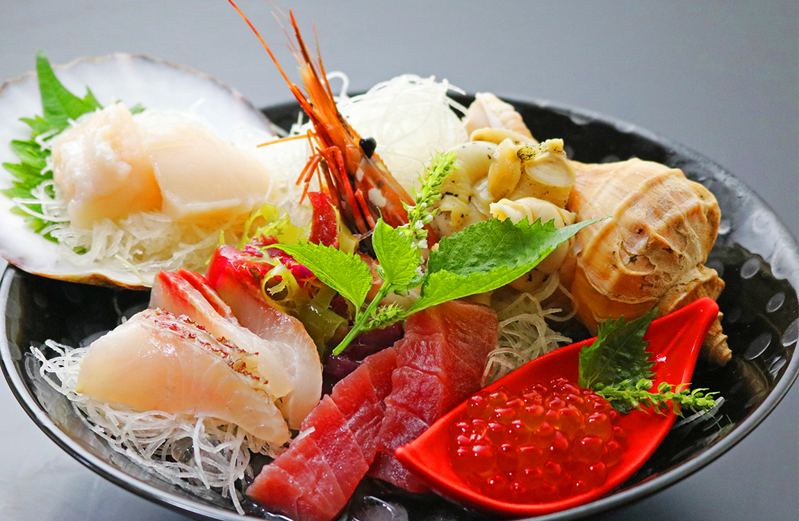 Please enjoy the taste of the freshly caught seafoood from the rough waves of the Sanriku of Mt.Kinka,where the Oyashio and the Kuroshio collide.