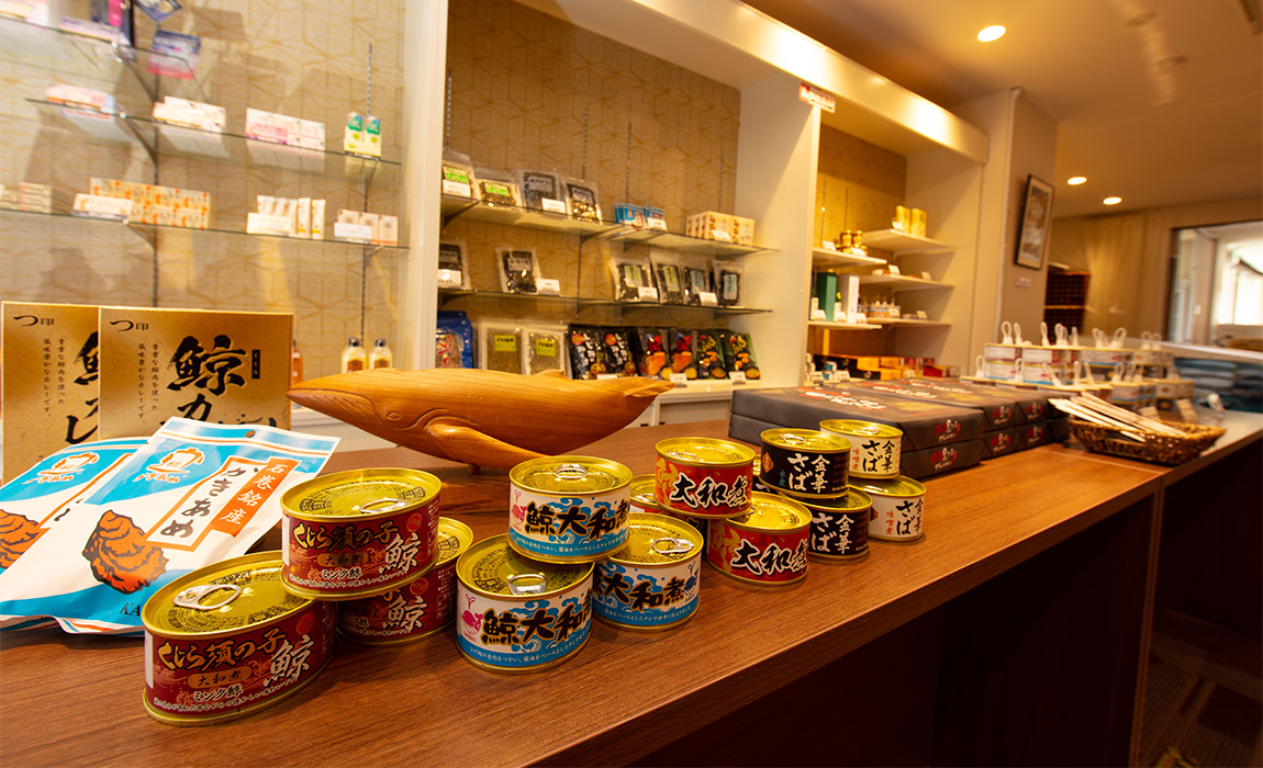 クジラの町ならではのお刺身用のミンク鯨や鯨ベーコンの他、酒の肴にぴったりのタレ、三陸沖産の金華サバ各種、石巻市民のソウルフード「かきあめ」まで揃っています。