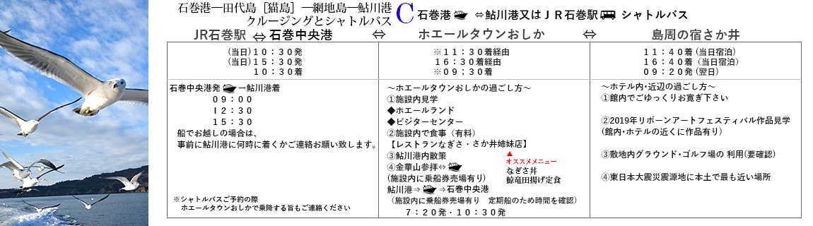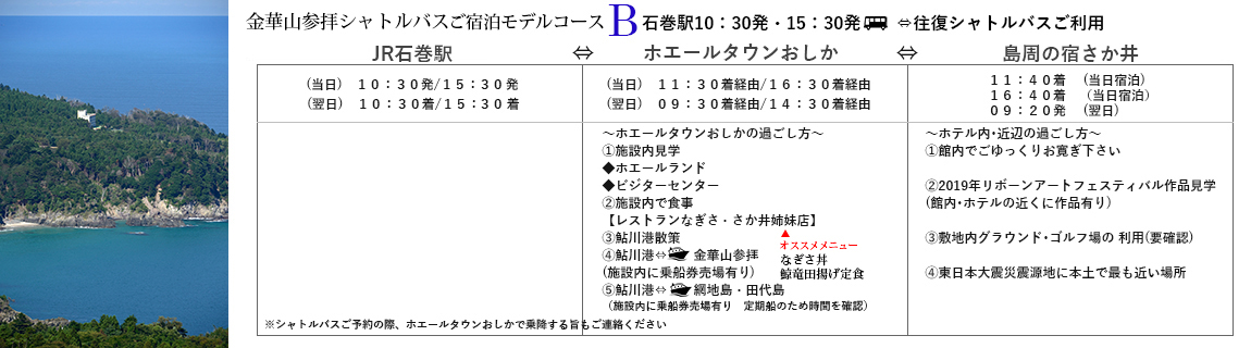 鮎川ー金華山の時刻表など詳細はこちらから