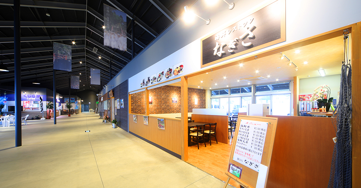 石巻ブランドをまるごとみなさまにお届けできるよう、石巻市、食品加工関連16社、地元料理店4店、 地元企業8社他が一同に集まり、旬の鮮魚、水産加工品から、農産品、地元の物産品、三陸地域や震災復興応援地域の特産品などを豊富に取り揃えております。 また2階には約140席のフードコートもあり、石巻の旬をその場で味わえます。